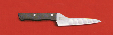 | 従来のペティナイフと違って持つ手がマナ板に接触しないので、きざみ物などでも楽にできます。 |